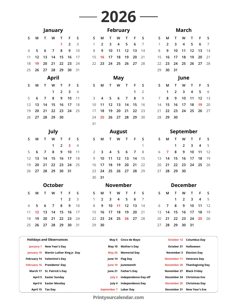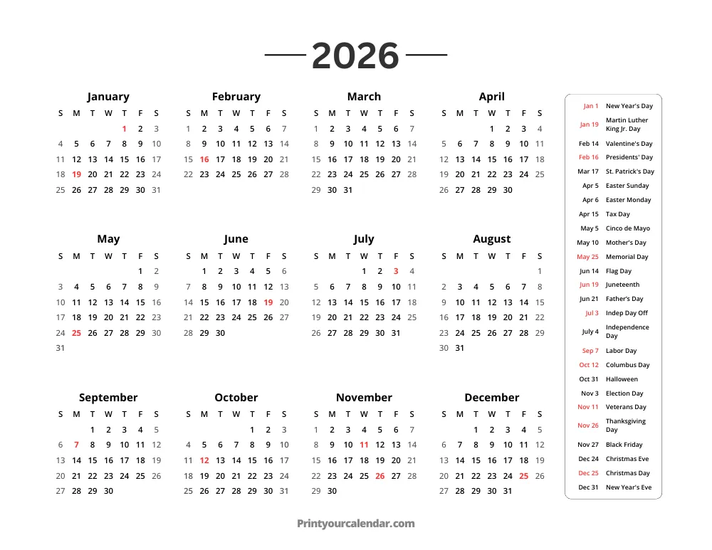 Looking for a simple, stylish way to stay organized in 2026? A one-page printable calendar is the perfect solution. It gives you the entire year at a glance so you can track goals, plan vacations, mark important dates, and keep daily life running smoothly without flipping through pages. Whether you love clean minimal designs, aesthetic layouts, or bold modern styles, the right calendar can turn planning into something you actually enjoy.