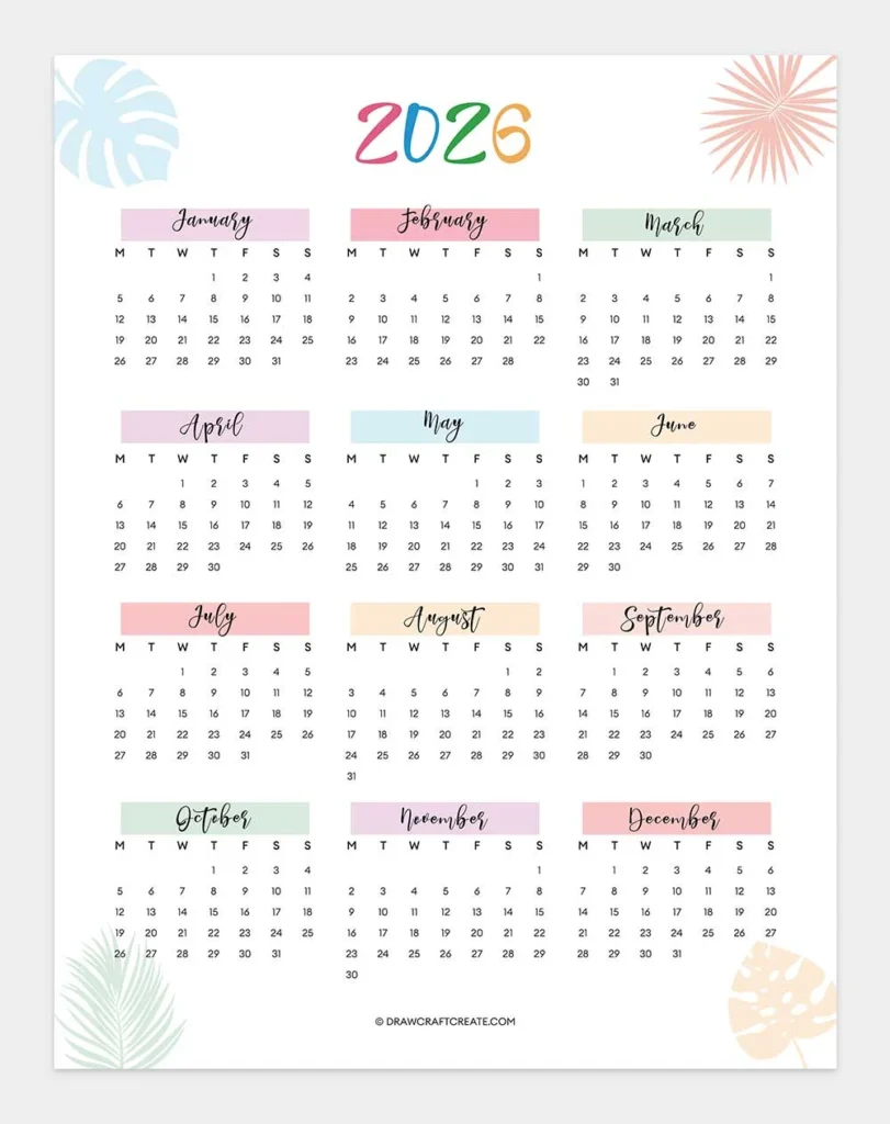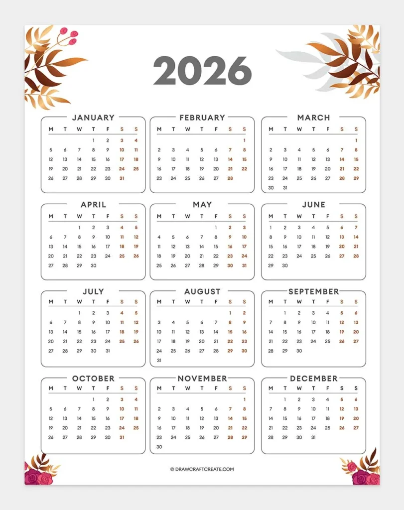 In this collection, you’ll find 25 carefully chosen one-page calendar designs for 2026 that are easy to print, beautiful to display, and practical to use every day. From soft pastel themes to sleek professional formats and fun creative layouts, these ideas are made to fit every style and workspace. Download your favorites, print them at home, and start your year feeling organized, inspired, and ready to move forward.