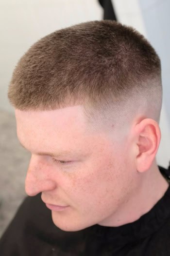 Simple, powerful, and always in style — the buzz cut with fade brings clean military discipline and urban edge into one low-maintenance cut. The fade on the sides adds sharp contrast, while the top stays short and practical. Ask your barber for a #1 or #2 guard on top and a gradual fade down the sides. Ideal for active lifestyles or men who prefer no-fuss grooming.