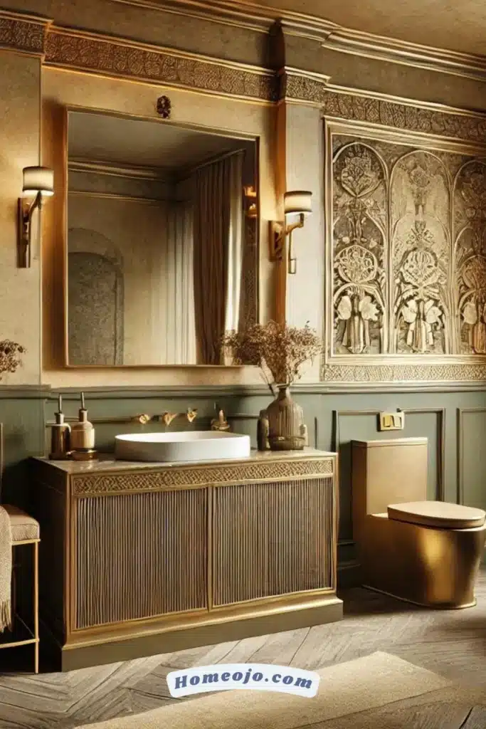 Add a touch of wealth and sophistication with metal accents like gold or brass fixtures.